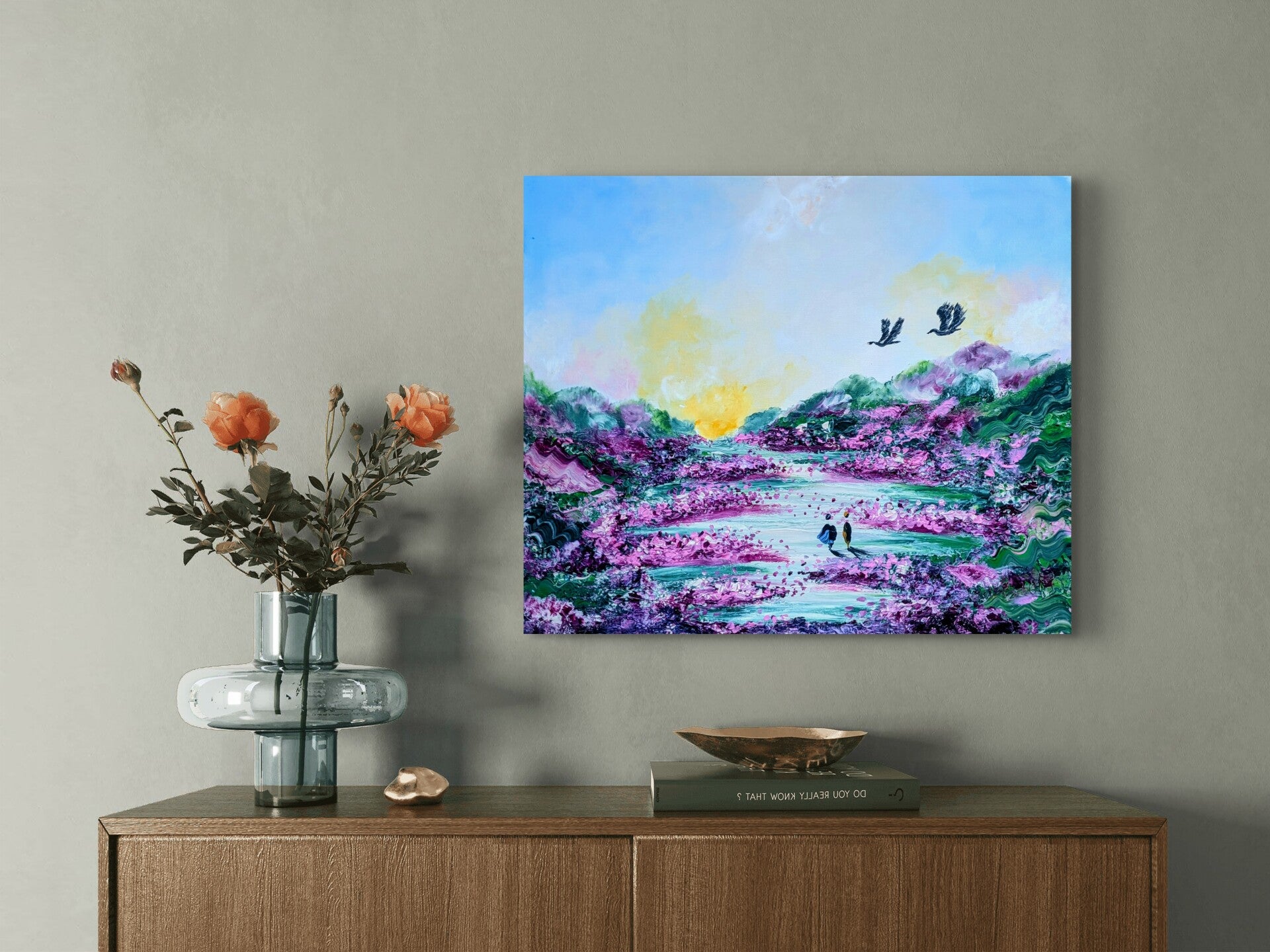 Malt med akrylmaling på bomullslerret - så kan henges rett på veggen !